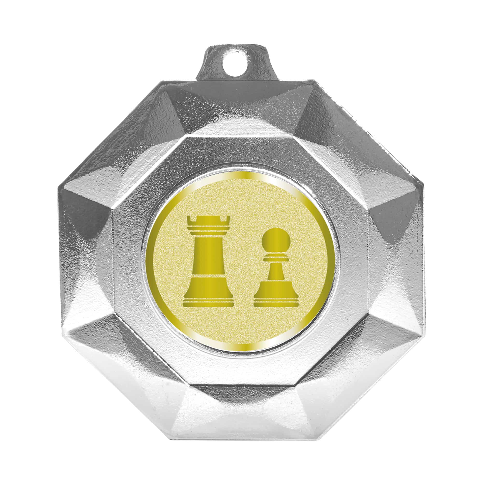 Medalla de color plateado de 50mm con disco a elegir.