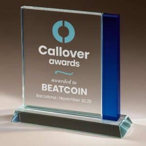 Trofeo de cristal para regalos personales o corporativos. Elige entre grabación UVI a color o grabación CO2 (marcado color gris...