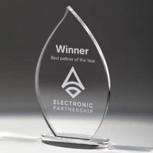 Trofeo de cristal para regalos personales o corporativos. Elige entre grabación UVI a color o grabación CO2 (marcado color gris...